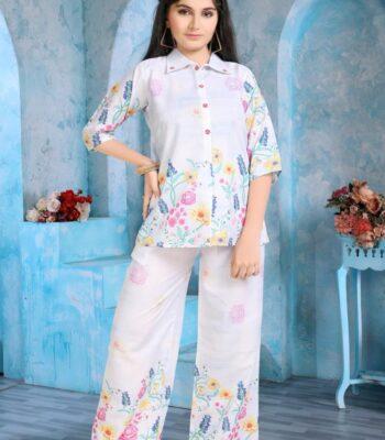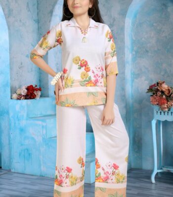 ₹1,870 – ₹2,620Price range: ₹1,870 through ₹2,620Elegant Floral Printed Short Tunic and Palazzo Set – Beige and Multi-color Casual Suit