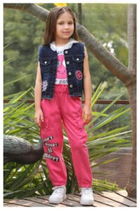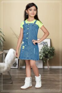 Girls’ Denim Pinafore Dress with Neon Green Tee – 2 Piece Outfit Set