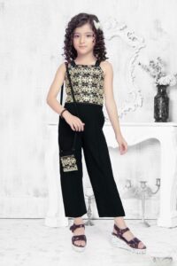 Chic Girls’ Beige Indo-Western Outfit with Embroidered Halter Top & Pleated Plazo
