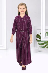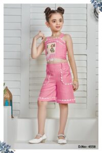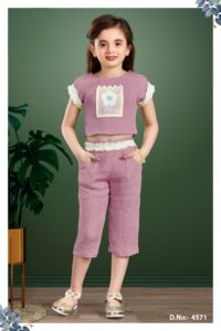 Girls’ Mauve Pink Textured Cotton Co-ord Set – Crochet Yoke Top and Culotte Pants