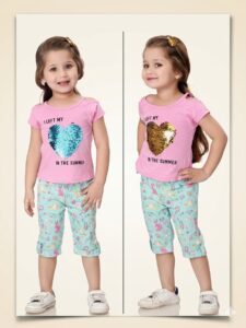 Girls’ Pink Textured Cotton Crop Top and Culotte Shorts Set with Scallop Trim