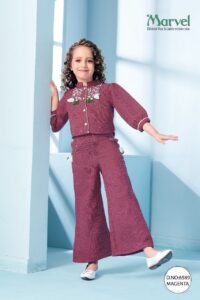 Marvel Girls’ 2-Piece Magenta Trousers Set: Embroidered Top & Wide-Leg Pants