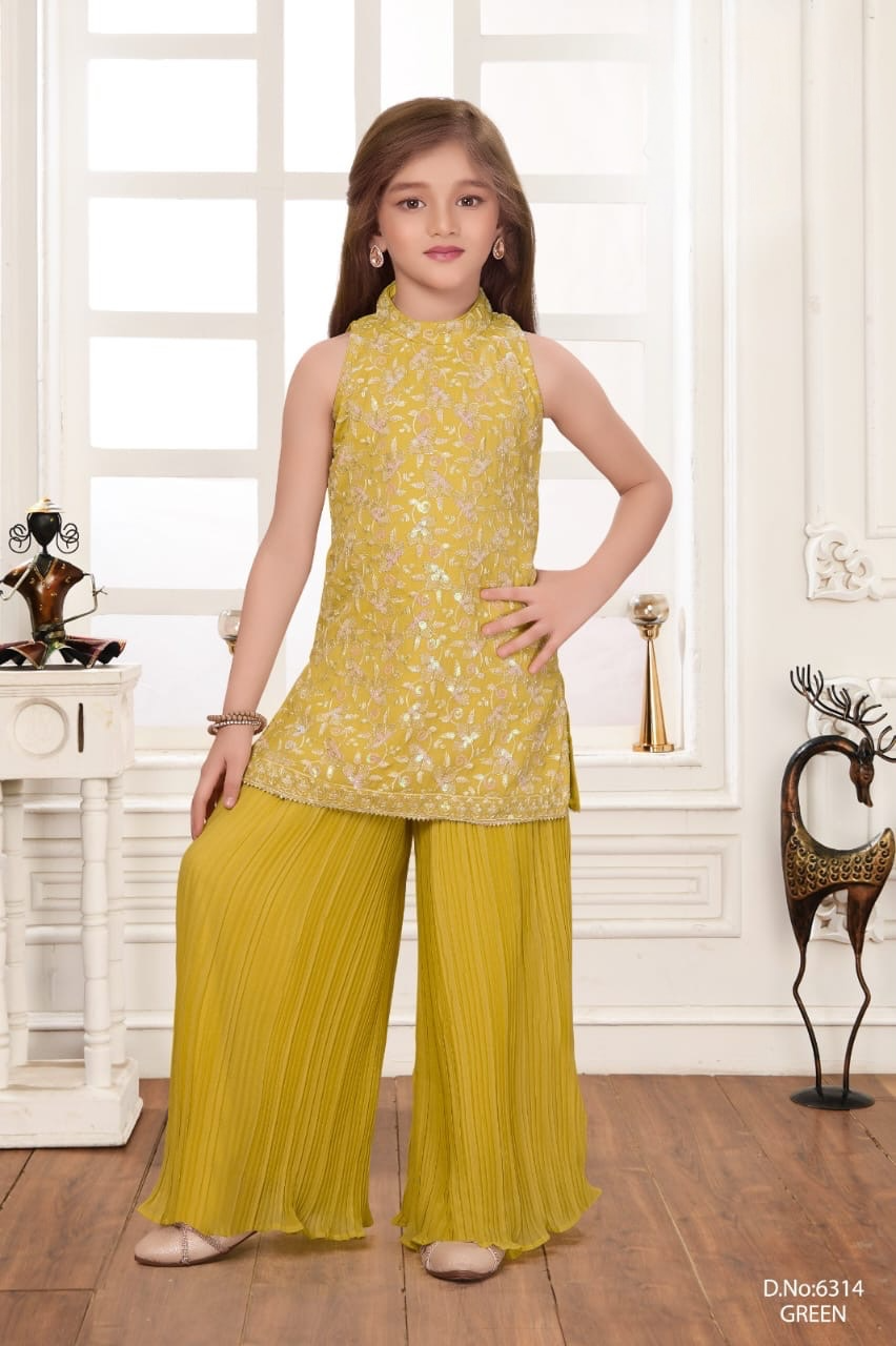 Brighten up any occasion with this stunning Girls’ Lime Green Kurti and Pleated Palazzo Set. This vibrant ensemble is the perfect blend of traditional Indian craftsmanship and modern, comfortable style, making it an excellent choice for wedding functions, Diwali, Eid, or special family gatherings. Designed for the young girl who loves to stand out!